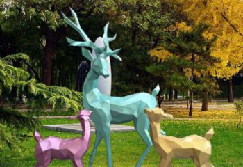 幾何彩繪梅花鹿雕塑,玻璃鋼裝點(diǎn)公園草坪