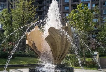 精致園林噴泉裝飾——不銹鋼貝殼創意雕塑