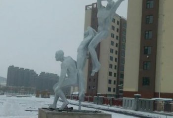 不銹鋼網格籃球場擺放雕塑,為小區廣場增添創意色彩