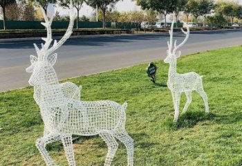 不銹鋼鏤空網格鹿燈光亮化擺件,為公園草坪上裝飾增添精彩