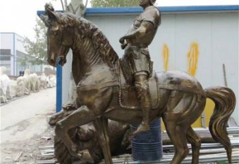 傳統工藝銅雕騎馬人物雕塑,點綴戶外園林