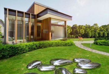 高端室內(nèi)草坪裝飾,不銹鋼雕塑鏡面石頭安放
