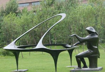 不銹鋼創(chuàng)意草坪雕塑鋼琴