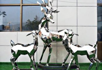 不銹鋼抽象動物雕塑——梅花鹿,為戶外草坪增添幾何美感