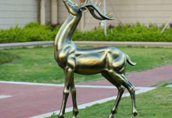 草坪裝飾不銹鋼仿銅抬頭鹿雕塑