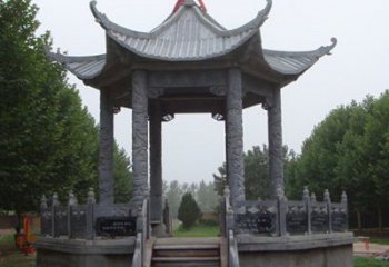 復古青石園林景觀草坪擺放涼亭
