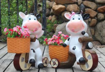 可愛卡通彩繪玻璃鋼拉著花盆兔子雕塑