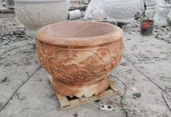 紅晚霞,精美石雕園林?jǐn)[件花盆雕塑