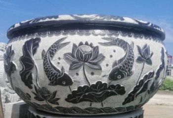 手工定制青石仿古魚缸花盆景觀石雕花雕刻盆擺件花缽雕塑