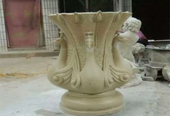 石雕孔雀歐式花盆,讓你的小區別墅園林更添精致