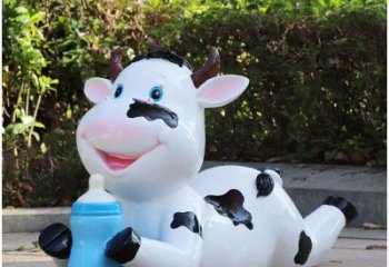 玻璃鋼牛雕塑,為幼兒園的幼兒們趴著喝奶更添樂趣