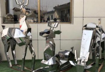 不銹鋼雕刻小鹿戶外園林幾何抽象雕塑
