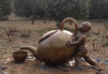 優雅銅色仿玻璃鋼兒童打陀螺雕塑