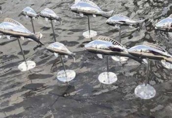 抽象創意不銹鋼鏡面小魚噴泉擺件