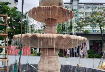 歐式大理石石雕流水噴泉,紅晚霞點(diǎn)綴