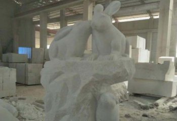 名門大號石雕兔子雕塑,高端裝飾您的別墅