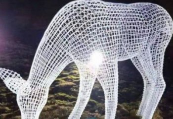 鐵藝梅花鹿雕塑,鏤空低頭更具韻味