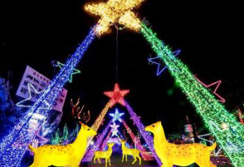 彩繪梅花鹿玻璃鋼雕塑,照明發光環繞