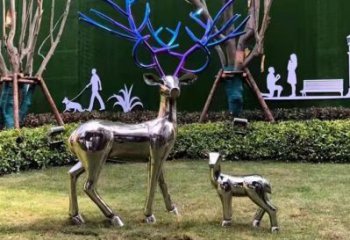 現代簡約不銹鋼梅花鹿擺件,點綴您的庭院園林景觀