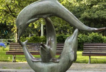 公園里的海豚精致的銅雕擺件讓你體驗海洋的美好