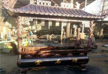 西塔禪寺鑄鐵漆金燒紙長形香爐雕塑