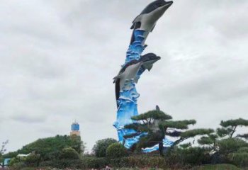 精美不銹鋼海豚雕塑,點綴別墅庭院