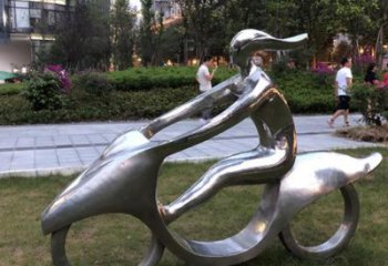 玻璃鋼制幼兒園雕塑——佩奇與喬治騎車是一種以佩奇和喬治兩個可愛的卡通人物為原型,采用玻璃鋼材料制作的雕塑,用于裝飾幼兒園的新型產品。