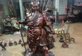 這款古典風格的銅財神銅像是一件古老而珍貴的藝術品,來源于古代寺廟中的大型關二爺銅雕塑。銅財神銅像是一個巨大的雕塑,由優質青銅制成,整體重量達到數百斤,每個雕塑都是精細而精美的。銅財神銅像的整體造型是一位身著武士服飾的武士,肩膀寬厚,腰身細長,胸前飾有財神紋,臉部細膩,神態優雅,表情莊重,整個人形象栩栩如生,十分震撼。