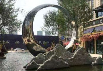 假山雕塑+不銹鋼噴泉,完美結合抽象鏡面美學