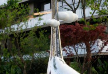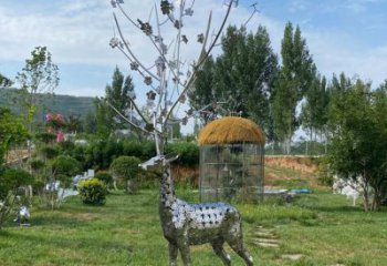 這組雙鹿雕塑是鏡面不銹鋼材質的抽象景觀作品,以鏤空手法重構鹿的形態:鏡面質感折射環境光澤,鏤空設計弱化實體厚重感,既保留動物雕塑的生機意象,又以現代美學適配公共空間,是藝術與實用的融合載體。