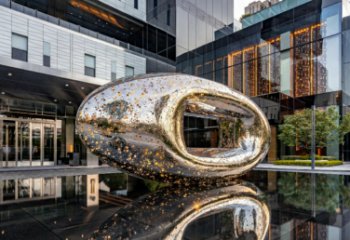書韻啟智?環宇書香 這座校園雕塑以 “書籍” 為核心視覺符號,采用不銹鋼雕塑的現代工藝,打造出兼具藝術美感與教育意義的景觀雕塑。雕塑主體為藍色環形結構,象征著知識的包容與無限,也寓意著校園是孕育思想的搖籃。環內與環頂各有一本金色翻開的書,金色代表知識的珍貴與閃耀,翻開的形態則象征著開放、求知與探索。環頂書本之上的金屬球體,既代表著智慧的結晶,也象征著通過閱讀可以抵達的廣闊世界與高遠理想。作為校園中的景觀雕塑,它不僅美化了環境,更成為精神地標,時刻提醒著師生以書為友、以學為樂,在知識的海洋中汲取力量,在書香的浸潤中成長成才。